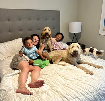 "Sarah is an incredible breeder, and we are beyond thrilled with our sweet Brownie Cocoa. She is loving, kind, and absolutely hilarious, bringing joy and laughter to everyone she meets. You can tell Sarah poured her heart into raising her puppies because Brownie has the most wonderful temperament. We are so grateful to have this little bundle of love in our lives thanks to Sarah."